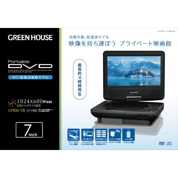 グリーンハウス GREEN HOUSE ポータブルDVDプレーヤー ブラック GH-PDV7R-BK