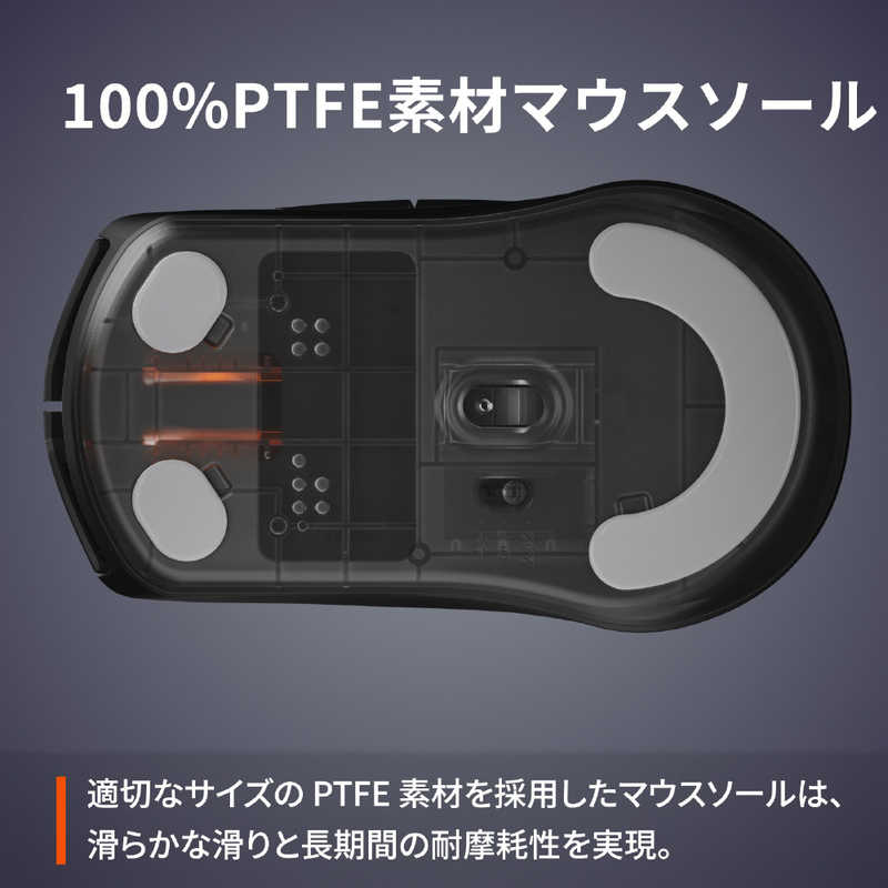 ●100%PTFE素材マウスソール:適切なサイズの PTFE 素材を採用したマウスソールは、滑らかな滑りと長期間の耐摩耗性を実現します。