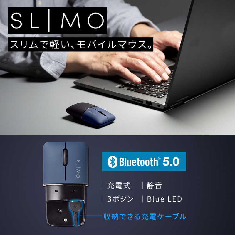 サンワサプライ Sanwa Supply 静音BluetoothブルーLEDマウス(充電式) SLIMO ネイビー MA-BBS310NV