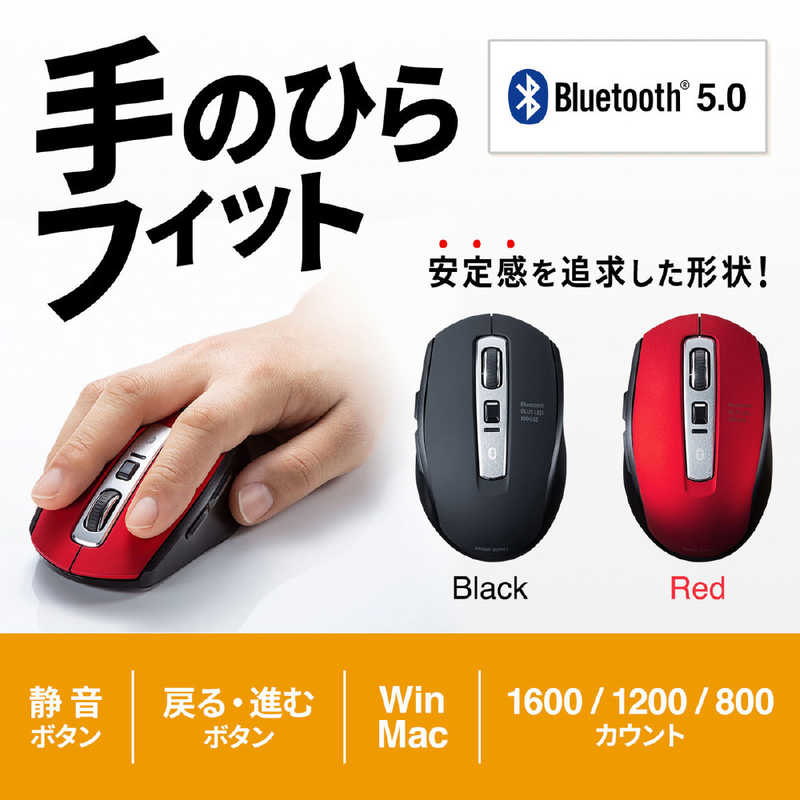 サンワサプライ Sanwa Supply 静音Bluetooth 5.0 ブルーLEDマウス レッド MA-BTBL162R