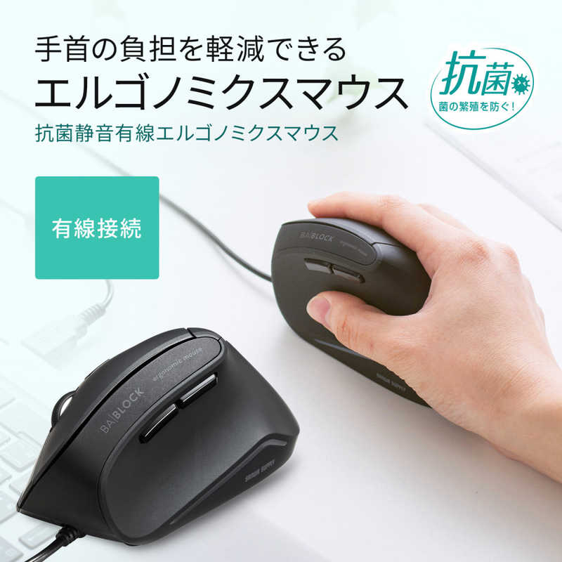 サンワサプライ Sanwa Supply 抗菌静音有線エルゴノミクスマウス MA-ERGK9