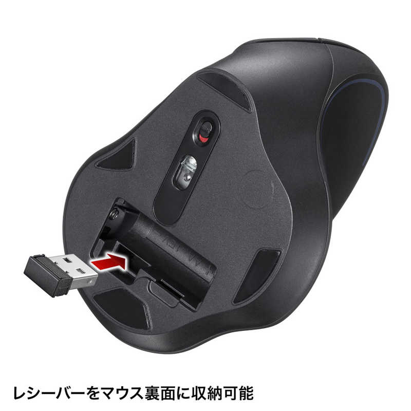 レシーバーはマウス本体のカバー内に収納するので安心です。