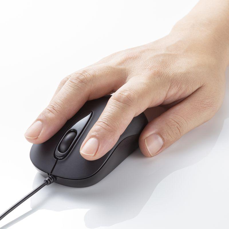 対称形で使いやすい、シンプルな有線マウスです。