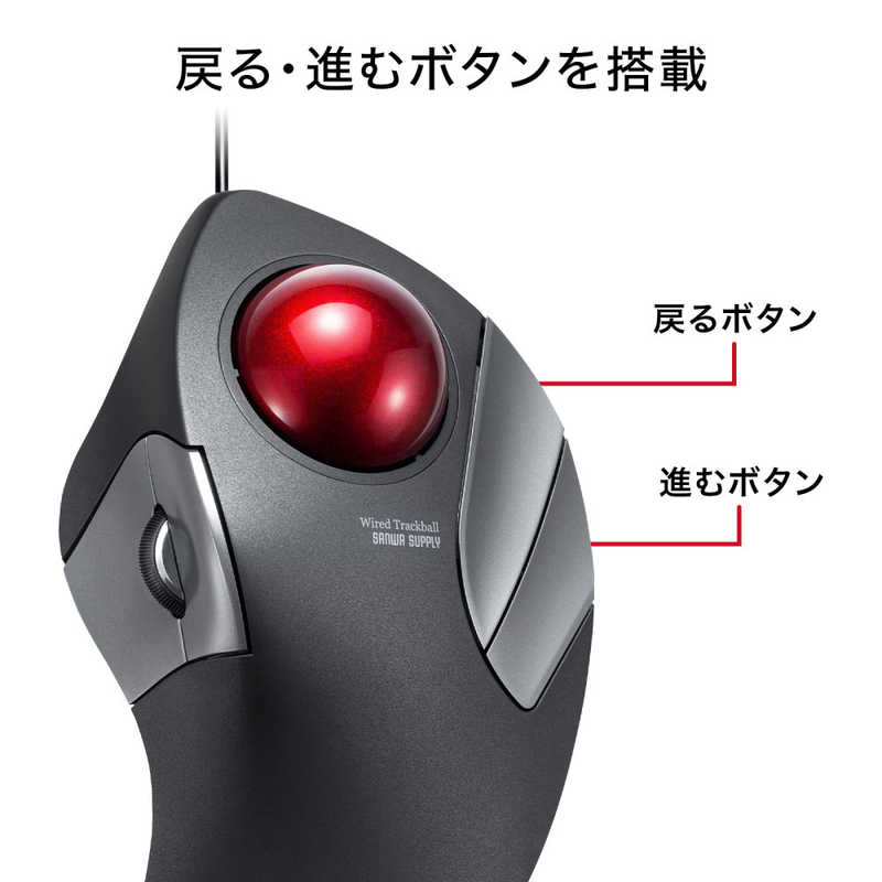 サンワサプライ Sanwa Supply 有線トラックボール(静音・5ボタン・人差し指/中指操作タイプ) MA-TB181BK