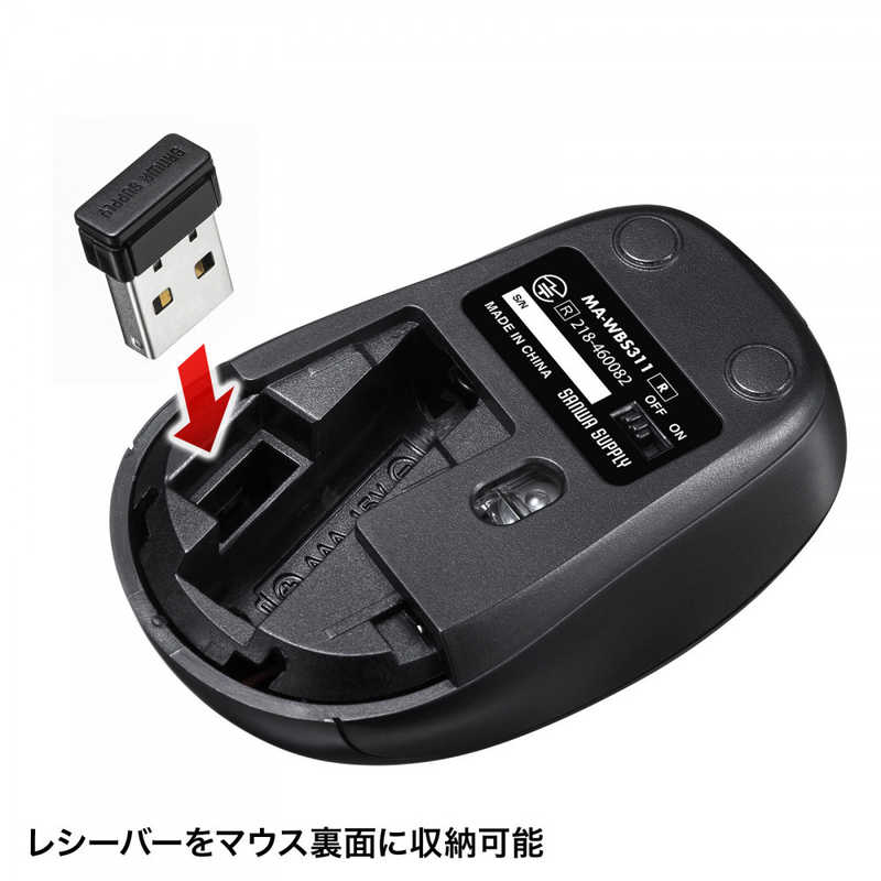 ●マウス本体にレシーバーを収納できるので、紛失の心配がありません。