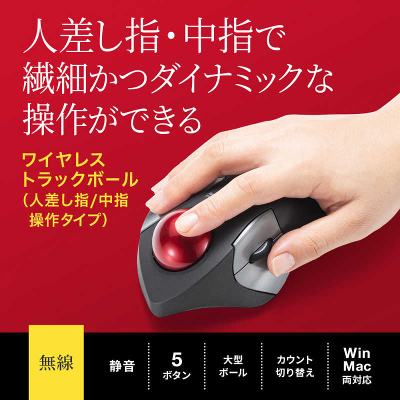 サンワサプライ Sanwa Supply ワイヤレストラックボール(静音・5ボタン・人差し指/中指操作タイプ) MA-WTB182BK