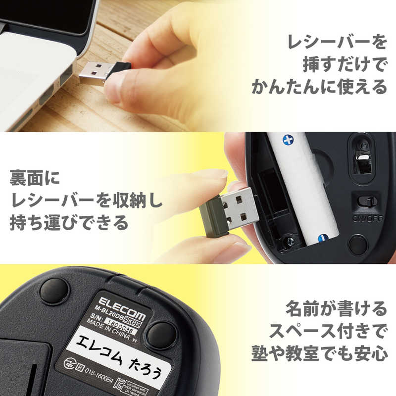 エレコム ELECOM 抗菌ワイヤレス静音BlueLEDマウス ブラック M-BL20DBSKBK