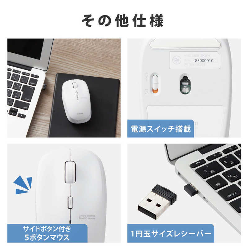 エレコム ELECOM 抗菌ワイヤレス静音BlueLEDマウス(5ボタン) ホワイト M-BL21DBSKWH
