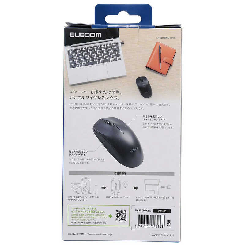 エレコム ELECOM USB Type-C(TM)無線光学式マウス[3ボタン/Lサイズ] ブラック M-LE10DRCBK