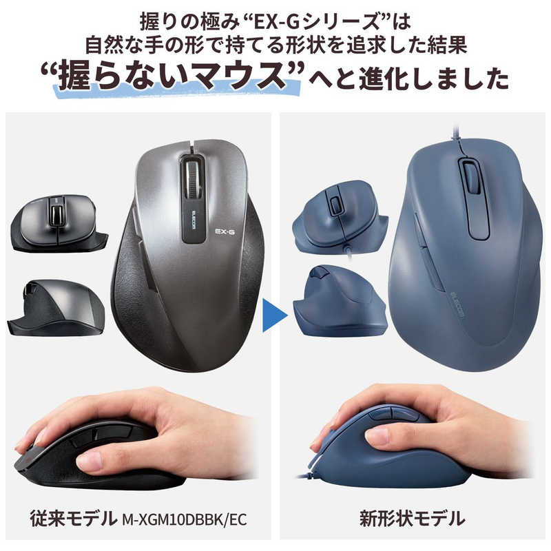 エレコム ELECOM マウス EX-G Mサイズ 抗菌 [BlueLED /有線 /5ボタン /USB] ブルー M-XGM30UBSKBU