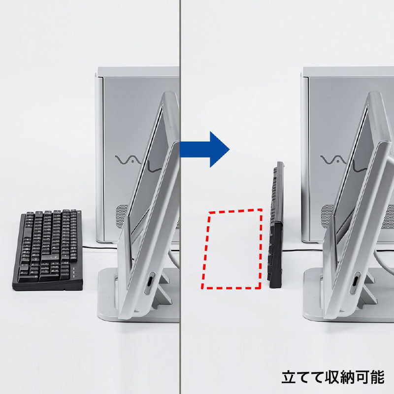 ●使用しない時はキーボードを立てて収納できます。