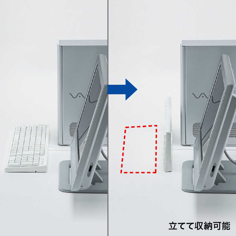 ●使用しない時はキーボードを立てて収納できます。