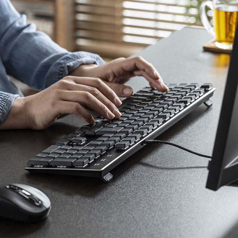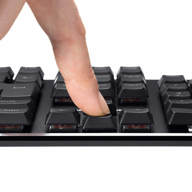 ●クリック感のない滑らかな軽いキータッチのメカニカルキースイッチです。メカニカルキー特有の「カチャカチャ」する音が無く、静かに素早いタイピングが可能です。