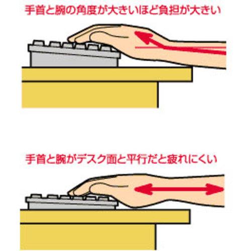 ●超薄タイプで手首・肩への負担を少なく!薄型タイプのキーボードには手首や肩の負担を軽くする効果があります。腕の重さは片方で約4kg。キーボードを打つ、マウスを動かす…その度に手首や肩には約4kgの重さが…。薄型タイプのキーボードは手首と腕がデスク面と平行になるので肩にも負担をかけません。