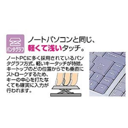 ●ノートPCに多く採用されている、信頼性の高いパンタグラフ方式スイッチを採用。パンタグラフ方式の特長は、キートップ全体でパンタグラフ構造を支えているため、キータイピングの位置がキートップのどの位置からでも垂直にストロークするため、タイプミスが少なく快適に入力することが可能です。