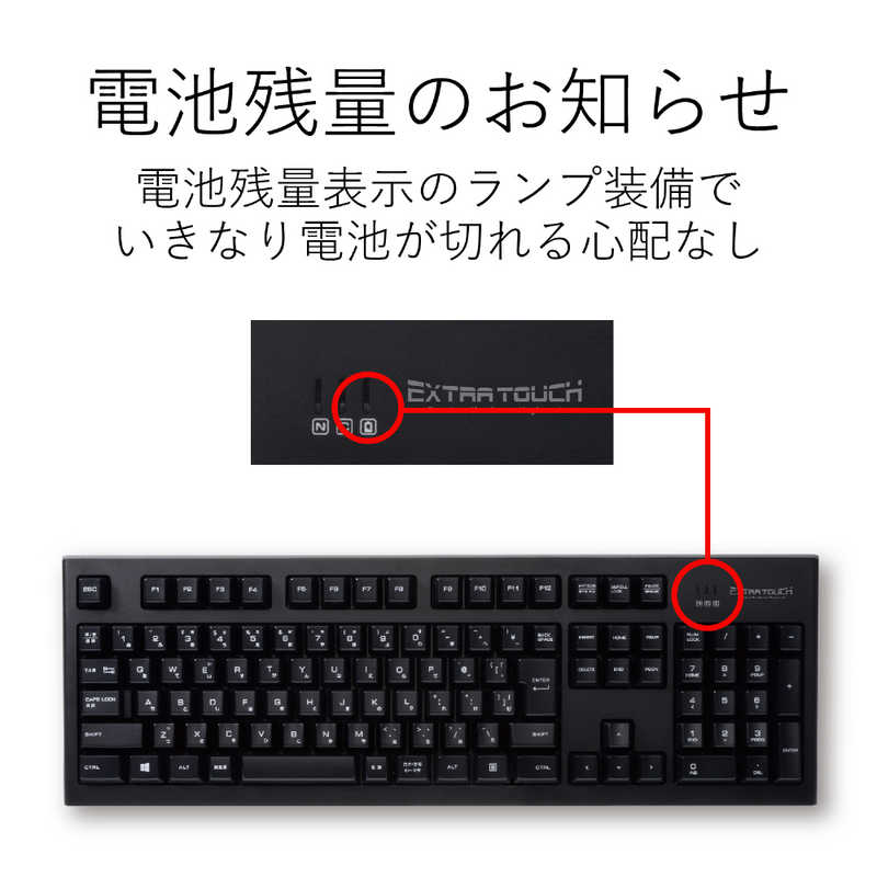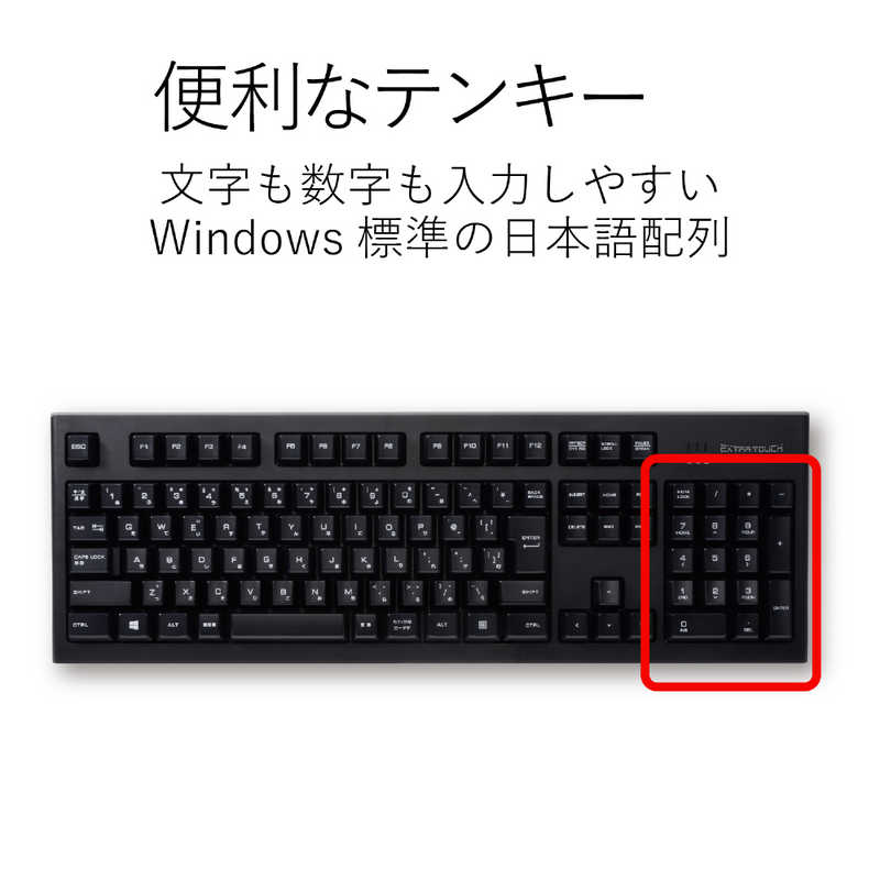 ●打鍵しやすい19mmのキーピッチと、日本語108キー配列を採用し、快適なタイピングが可能です。