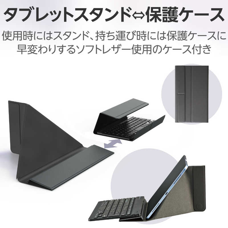 ■上質感のあるソフトレザーを使用した保護ケースが付いています。持ち運び時には本体の保護ケースとして、使用時にはタブレット・スマートフォンのスタンドとして使用可能です。