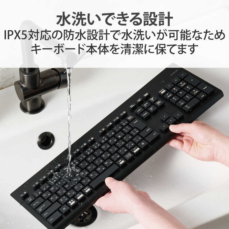 ●IPX5対応の防水設計で水洗いが可能なため、キーボード本体を清潔に保てます。