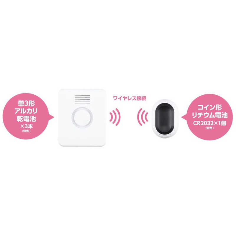 電池はコール受信機(単3形アルカリ乾電池×3本)、コールボタン(コイン形リチウム電池(CR2032)×1個)が必要です(別売)。