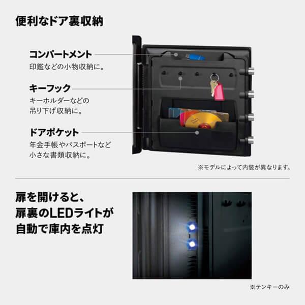 従来比60%UPの極太カンヌキとこじ開けに強い構造のセキュリティ性はそのままに、2時間で1010℃まで加熱する過酷なUL耐火試験とデジタルメディア耐火テストをクリアし、強靭な耐火性能を備えました。さらに消火放水や浸水からも守る耐水性能も装備した、最上級の性能を備えた金庫です。重要な書類をはじめ、貴重品や家族の大切な思い出・記録からデータまで、身近な所で保管することができます。