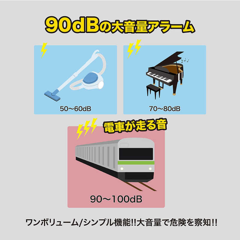 ワンボリューム/シンプル機能!大音量で危険を察知!