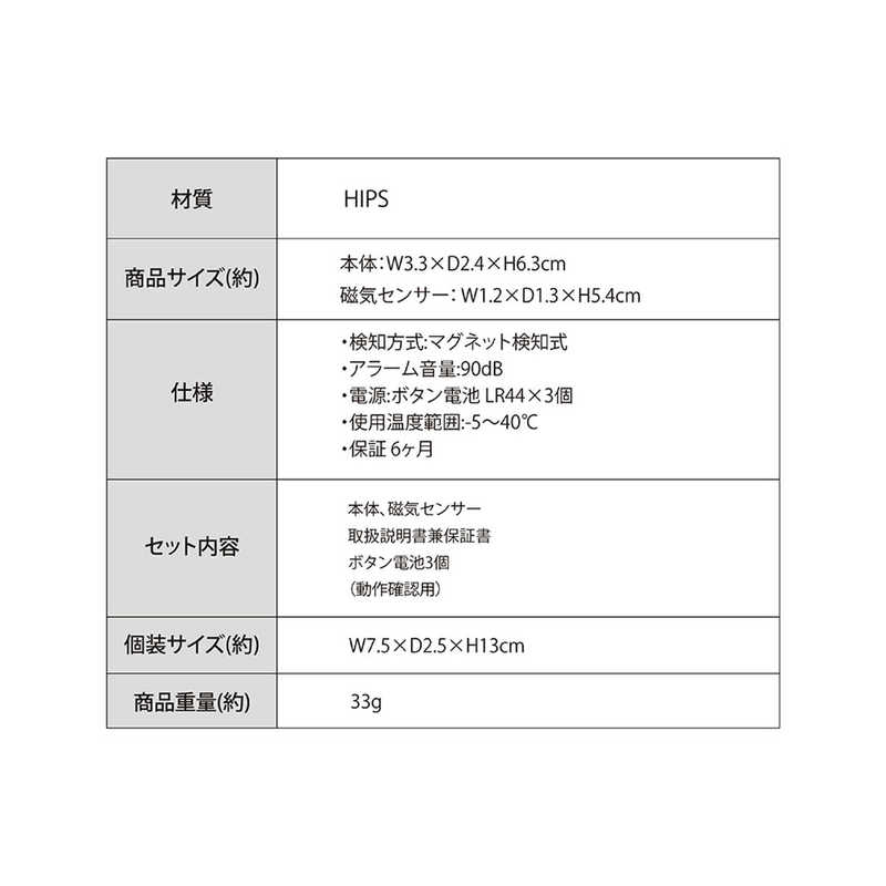 ■[セット内容]本体、磁気センサー、取扱説明書兼保証書、ボタン電池3個(動作確認用)