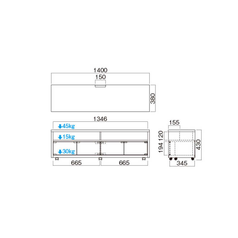 ●寸法:W140.0×H43.0×D38.0cm