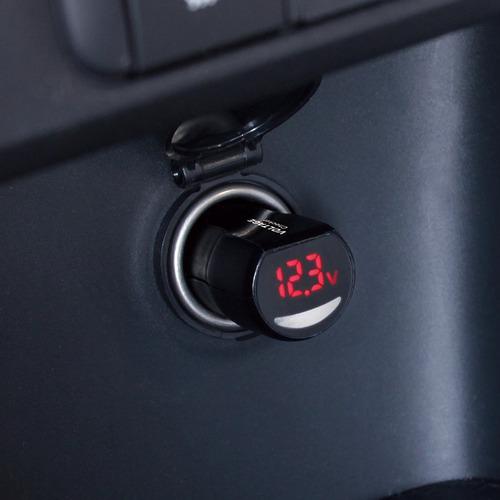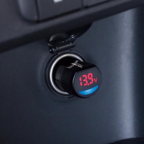 ●アクセサリー電源ソケットに挿し込むだけで簡単に車両の電圧を測定し、表示する。