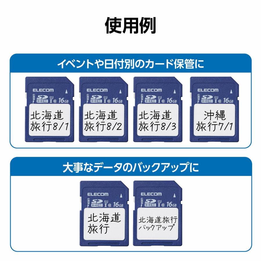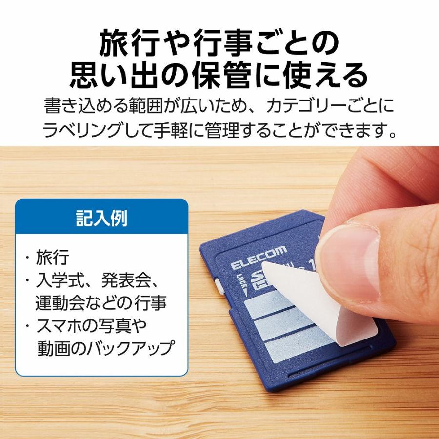 ●撮影日時や保存内容などを書き込める、フリースペースが大きいラベルを採用したSDHCメモリカードです。