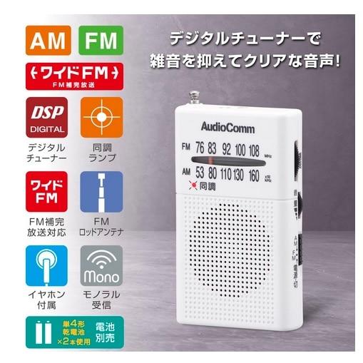オーム電機 OHM ポケットラジオ AM/FM [ワイドFM対応 / AM/FM] ホワイト RAD-P380S-W