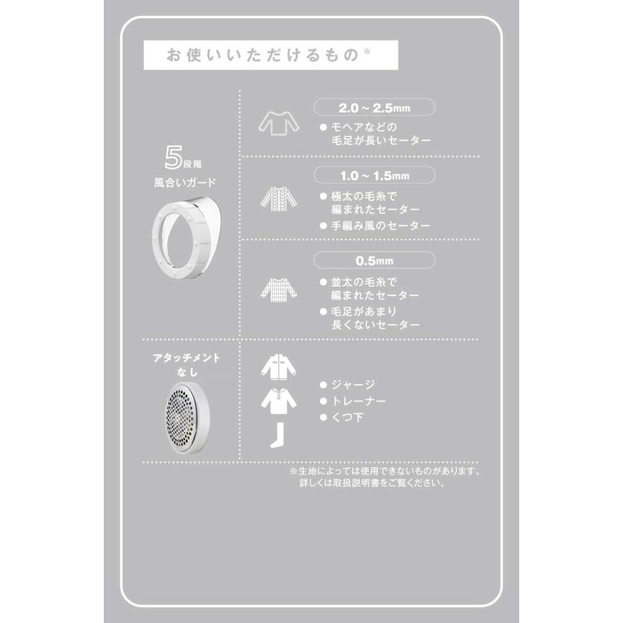 ●風合いガードは5段階で調整できて、仕上がりを0.5mm~2.5mmまで0.5mmごとに変えられます。生地に応じて残したい毛足の長さを変えられるから、気になる部分だけをカットしてきれいな仕上がりに。