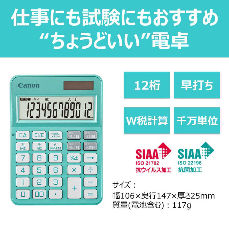 キャノン Canon カラフル電卓 ミニ卓上(12桁) ミントグリーン KS-126WUV-MG