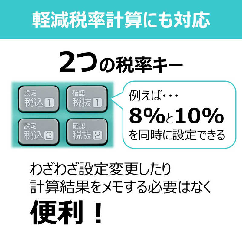 ●2つの「税利率登録キー」搭載。