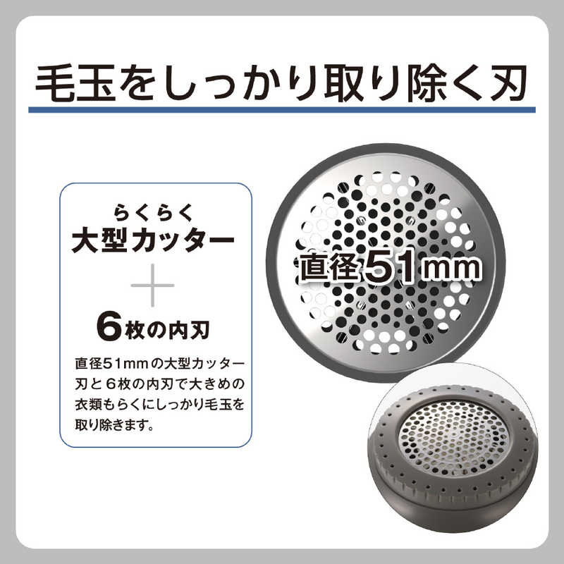 ●51mmの大型カッターと、6枚の内刃が毛玉を逃さずしっかり取り除きます。