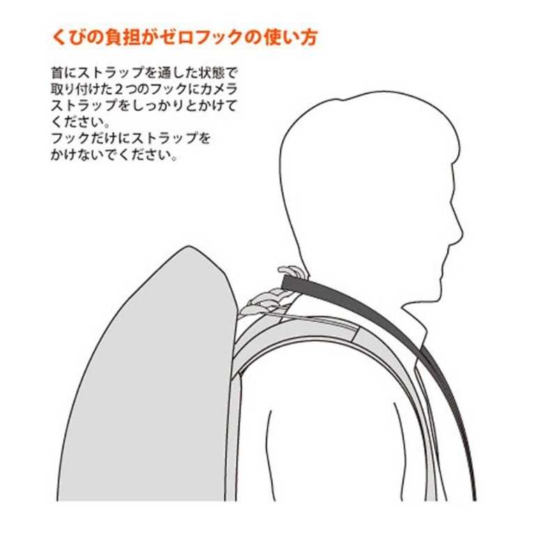 ●パックパックに取り付けたフック状のパーツにカメラストラップを引っ掛けることで、首に掛かるカメラの重みをゼロにする画期的な製品です。