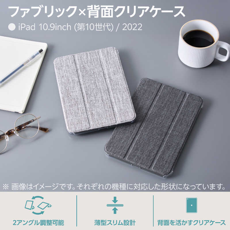エレコム ELECOM iPad(A16) iPad 第10世代 フラップケース 背面クリア ファブリック スリープ対応 TB-A24RWVCBK