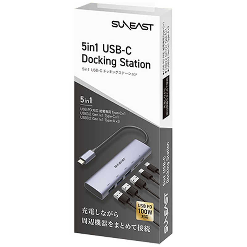 SUNEAST [USB-C オス→メス USB3-2typeCx1/USB3-2typeAx3/USB PD給電専用x1]USB PD対応 ドッキングステーション/USBハブ SEーDSRC51A3C1P