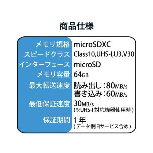 エレコム ELECOM データ復旧microSDXCカード(UHS-I U3 V30・64GB) MF-MS064GU13V3R