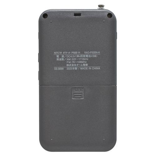 オーム電機 OHM AudioComm Nラジオ ポケット P500 ガンメタグレー|RAD-P500N-H