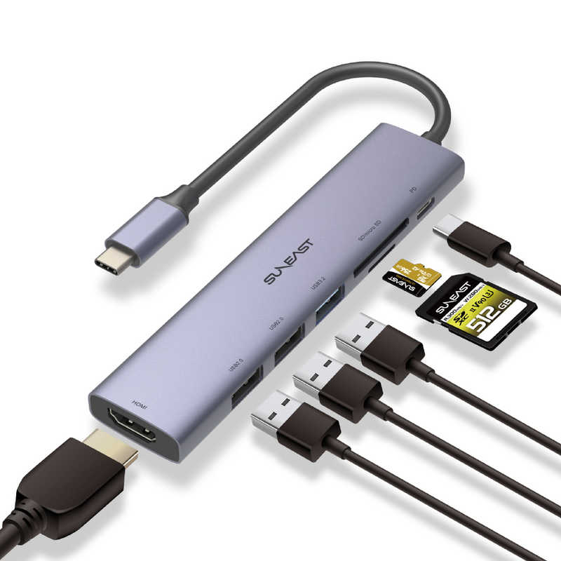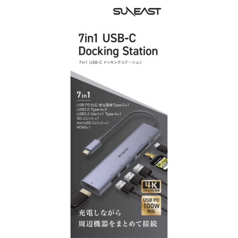 SUNEAST USB PD対応 ドッキングステーション/USBハブ[バスパワー /7ポート /USB 3-2 Gen1対応 /USB Power Delivery対応] SE-DSRC71A3MSDP