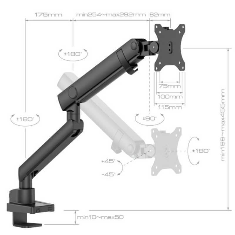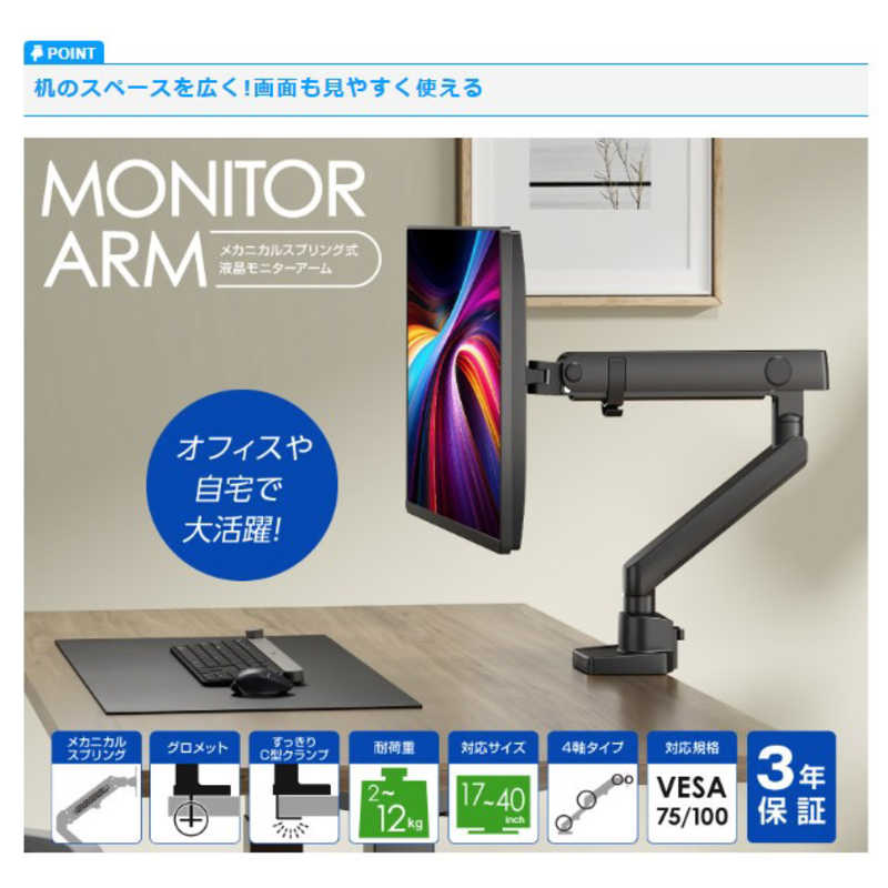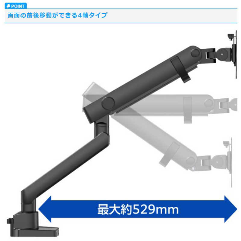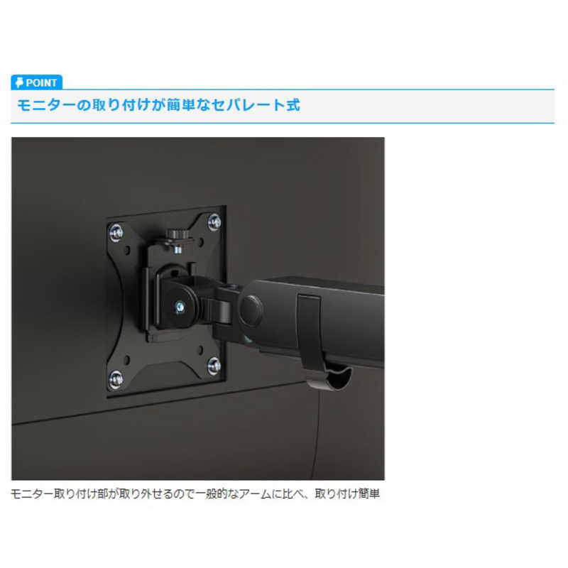 グリーンハウス 17~40インチ用液晶モニターアーム メカニカルスプリング 1画面 クランプ/グロメット式 ブラック GH-AMES1-BK