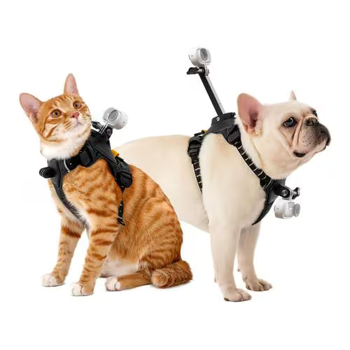 調節可能なバックストラップとスナップイン設計により、撮影時には簡単にペット用ハーネスを装着できます。