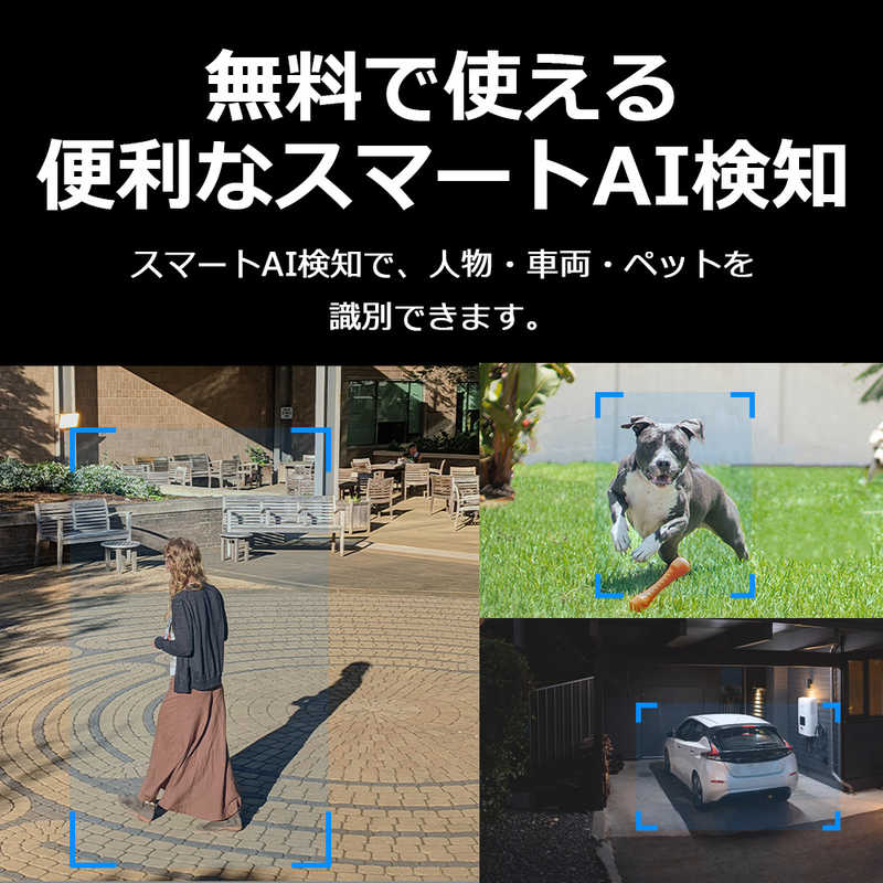 ●優れた検知機能:AIが人物・ペット・車両を識別し、必要に応じてユーザーへ通知します。