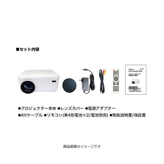 ■セット内容:本体、レンズカバー、電源アダプター 100V 50/60Hz (ケーブル長さ:約1.5m)、AVケーブル (ケーブル長さ:約1.5m/入力1ピン・出力3ピン)、リモコン (単4形乾電池×2本/別売)、取扱説明書/保証書