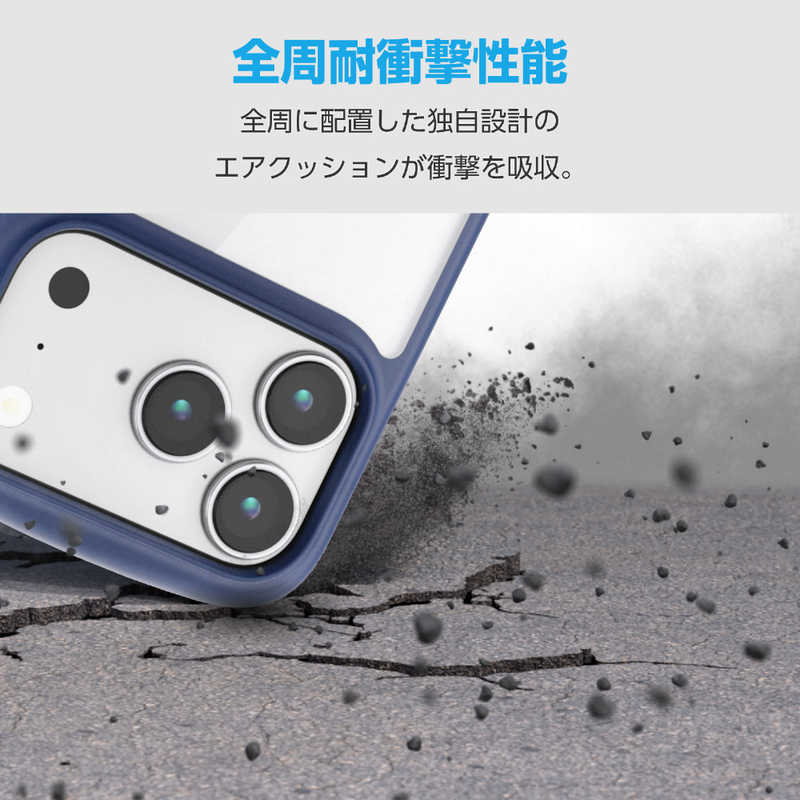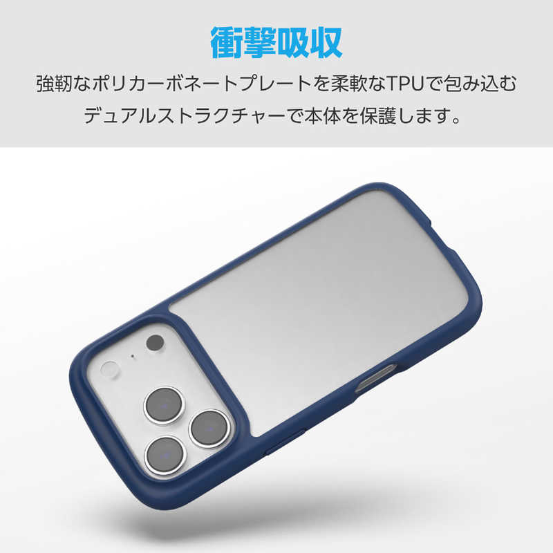 エレコム ELECOM iPhone17 Pro用TOUGH SLIM LITE ケース フレームカラー メタルステッカー付 ネイビー PM-A25CTSLFCNV