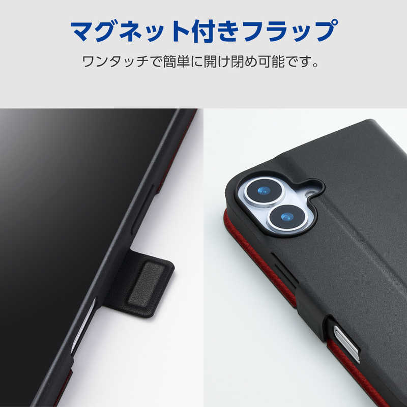 エレコム ELECOM iPhone 16e用ソフトレザーケース 薄型 磁石付 ブラック PM-A25SPLFUBK