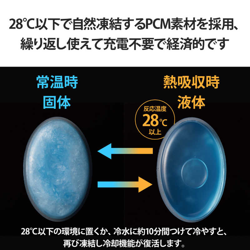 28℃以下で自然凍結するPCM素材を採用しています。