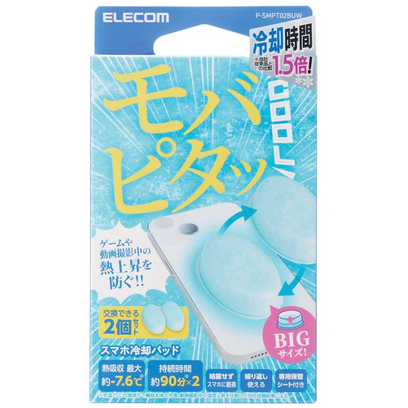 エレコム ELECOM ELECOM モバピタッCool スマホ冷却パッド 2個入 BIGサイズ ライトブルー P-SMPT02BUW