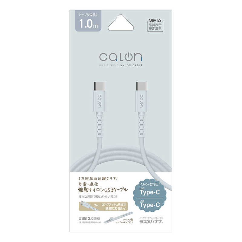 ラスタバナナ RastaBanana calon Type-C to Type-C 強靭ナイロンケーブル 1.0m SBL [USB Power Delivery対応] スモーキーブルー R10CACC3A05SBL