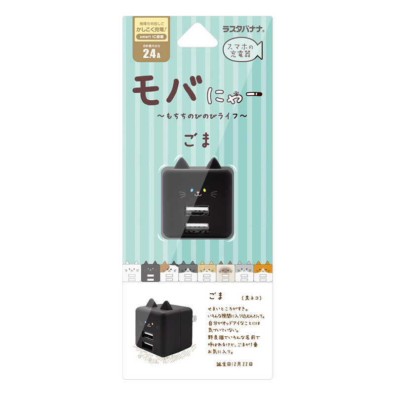 ラスタバナナ RastaBanana USB2ポート モバにゃー AC充電器 計2.4A ゴマ RAC2A2A02GOM